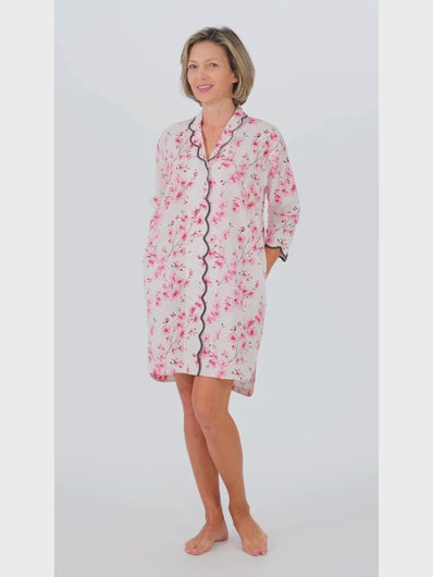 I have prioritized my floral designs around my favorite flowers and this little blossom might be the exception to the rule. I don’t consider the cherry blossom a flower in the same sense as the hydrangea or the lily of the valley, yet it is a flower that makes my heart race when I see it. Last spring (which means February in California) I was driving along a beautiful country road lined with blooming cherry trees. The sight was spectacular. It was at that moment I decided to create a print that might make customers feel the same way when they wore it.