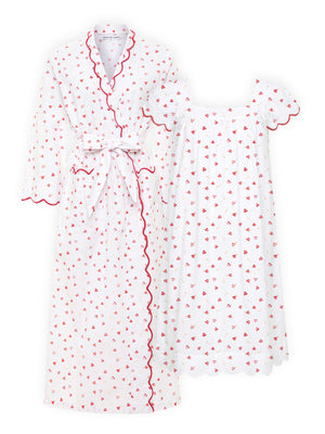 Indulge in luxurious comfort with my new Hearts & Arrows print Set, featuring our Classic Robe and Cap Sleeve Short Nightgown. Introducing our perfect valentine's day print: Hearts & Arrows, crafted for ultimate comfort and style. Perfect for cozy nights in or lounging at home, this exclusive design captures the charm and elegance of Heidi's floral prints. Flowing delicately with a modest, roomy fit, this exquisite nightgown adds a stylish touch to your evening spring and summer wardrobe. Enjoy a 15% discount when you purchase this exquisite bundle, adding both style and savings to your wardrobe.