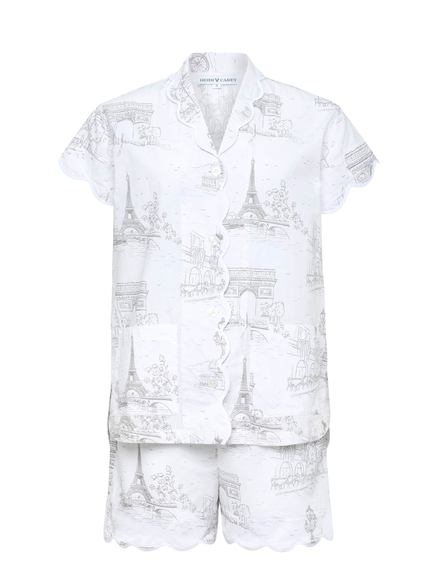 Did you know the average woman spends nearly 26 years of her life in bed? Make every one of those nights count with my flattering Paris Print 2-piece short paris print pajama set with shorts. Designed by Heidi & handcrafted by skilled artisans, this short pajama features one of our best-selling prints: paris print. The straight-fit design, adorned with elegant scalloped edges, gives you a flattering, feminine look without being constricting — so you stay cool and comfortable all night long.
